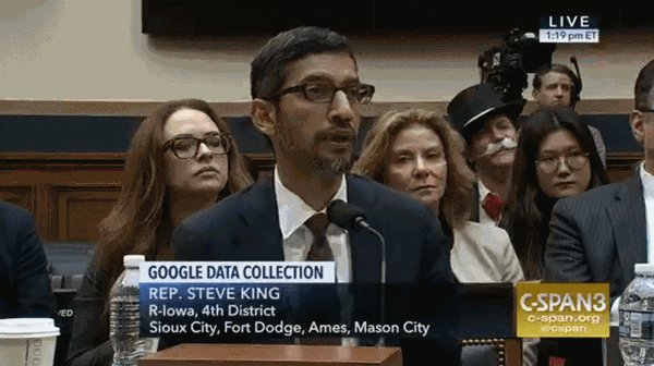 “硅谷大神”、谷歌CEO皮查伊(Sundar Pichai)日前(11日)被美国众议院传唤参加听证会,内容和3月份的脸书听证会有些相似,都是接受议员们关于“数据和隐私”方面的问询。