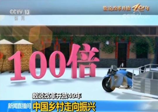 央视网消息:改革开放40年来,我国不断深化农村改革,从改革开放初实行土地家庭联产承包责任制到如今实施乡村振兴战略,强农富农惠农政策体系不断完善,今天的《数说改革开放40年》来看我国农业农村的发展巨变。