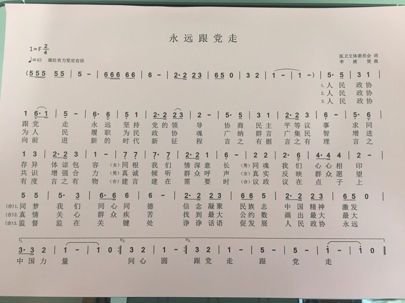 在深入开展习近平总书记关于加强和改进人民政协工作的重要思想学习研讨活动中,天津市政协委员创作了表达人民政协在新时代永远坚持党的领导的坚定决心、抒发政协人凝心聚力促发展、精诚团结为人民情怀的歌曲《永远跟党走》。