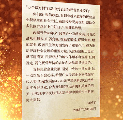 今年10月,习近平给“万企帮万村”行动中受表彰民营企业家的一封回信引起社会各界热议。