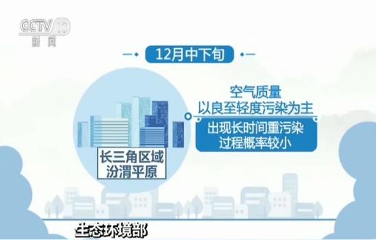 12月中下旬,受冷空气扩散过程影响,长三角区域、汾渭平原空气质量以良至轻度污染为主,出现长时间重污染过程概率较?。欢鼻蛘蹇掌柿恳话?,首要污染物为PM2.5;华南区域冷空气活跃,但强度一般,区域北部将出现局部中至重度污染;西南区域、西北区域部分城市可能出现不同程度重污染过程,新疆南疆受大风天气影响将持续出现扬沙或浮尘天气。