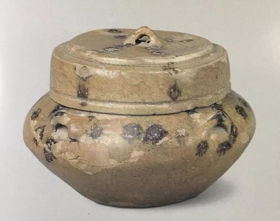 东晋 殴窑青釉点彩盖盂 浙江省温州市双屿雨伞寺东晋升平三年(359年)墓出土 通高8.5厘米 现藏于温州市博物馆
