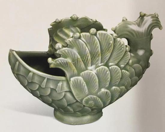 五代 耀州窑青釉摩羯形水盂 1971年辽宁省北漂县北四家子公社水泉大队1号辽墓出土 长14厘米 现藏于辽宁省博物馆
