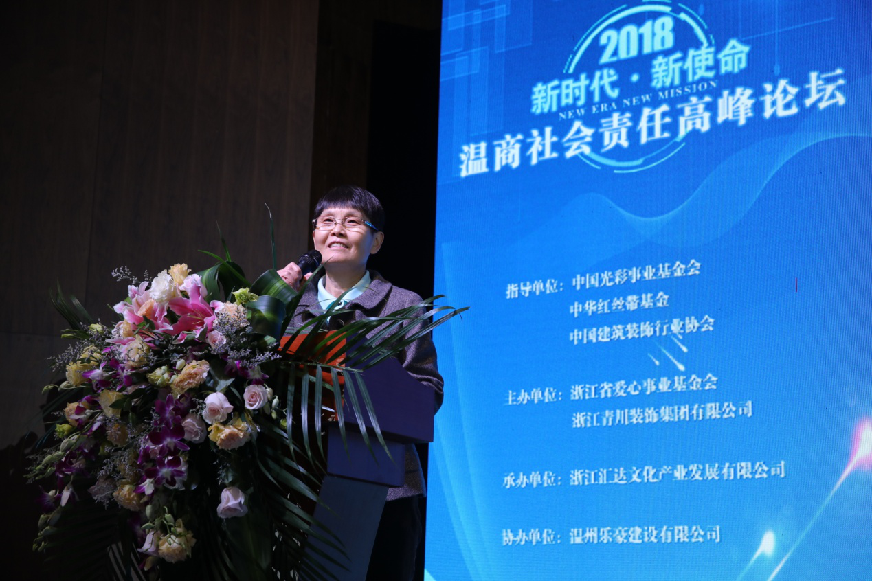 人民政协网温州12月19日电 由浙江省爱心事业基金会、浙江青川装饰集团有限公司共同主办的“新时代新使命2018温商社会责任高峰论坛” 12月18日在温州举办。中华全国工商业联合会原党组成员、副主席、中华职业教育社副理事长孙晓华,中国慈善联合会副会长兼秘书长刘福清,全国工商业联合会原副秘书长、中国民营经济研究会常务副会长王忠明,浙江省住建厅原副厅长恽稚荣,浙江省民政厅慈善事业促进处处长、浙江省慈善联合总会副会长兼秘书长陈小德,浙江省人民政府咨询委员会委员、原浙江工商大学校长张仁寿,浙江省慈善联合总会副会长、浙江省爱心事业基金会执行理事长兼秘书长胡勇耀等嘉宾共300余人参加了会议。
