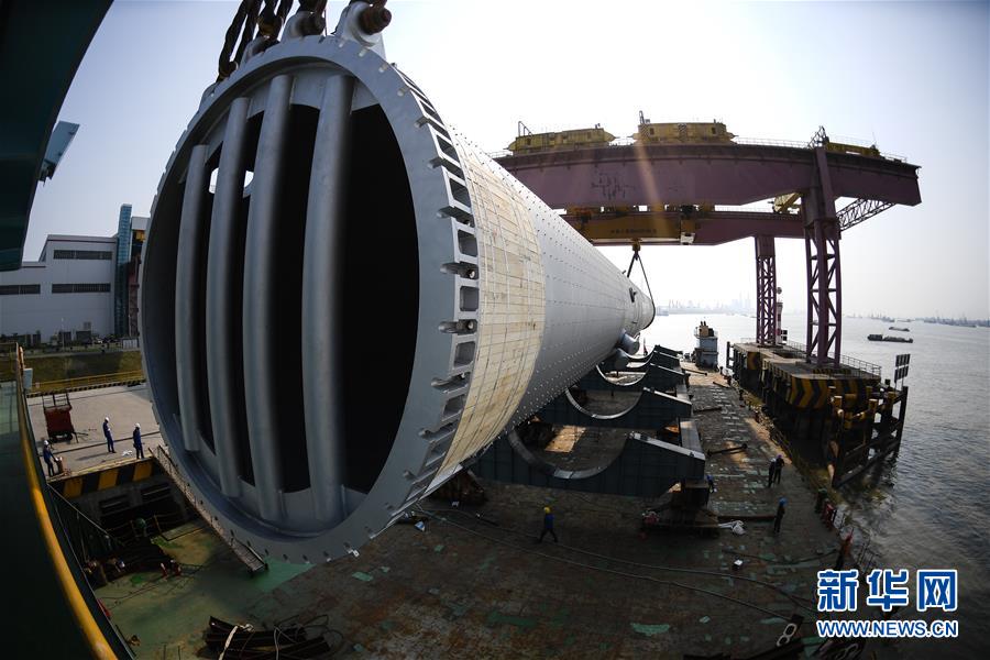 在江苏镇江,260万吨/年沸腾床渣油锻焊加氢反应器正在进行吊装(4月28日摄)。 新华社记者李响摄