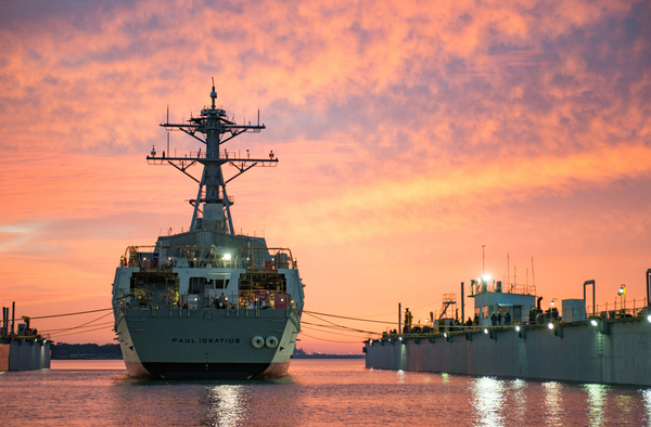 离开船坞的“保罗·伊格内修斯” ,夕阳西下,最美不过夕阳红 图源:USNI