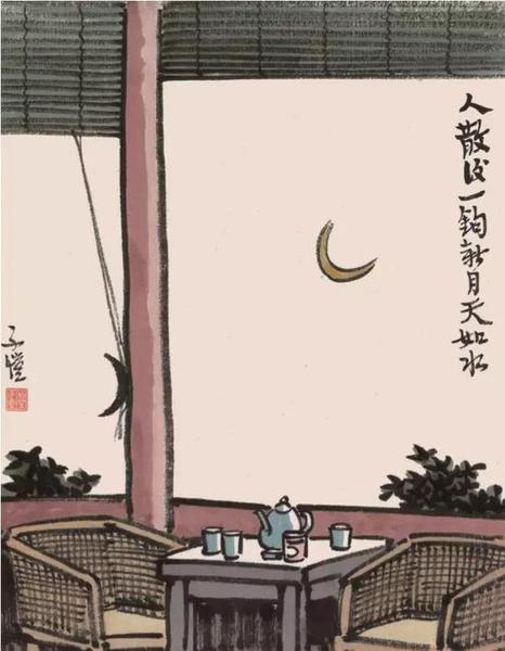1922年,丰子恺到浙江上虞白马湖畔的春晖中学工作。这时候他开始创作“古诗新画”,而当朱自清、夏丏尊、叶圣陶、朱光潜等人看后,建议他在杂志上发表。他发表的第一幅画是《人散后,一钩新月天如水》?;心歉瞿?、淡泊的月夜,仿佛就出现在眼前。这件作品让他一下子受到广泛关注,从此“子恺漫画”名满天下。