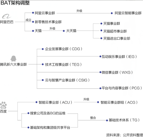 去年十一前夕,腾讯宣布组织架构调整方案,在这之后,包括阿里和百度在内的互联网公司先后宣布了组织架构调整消息。