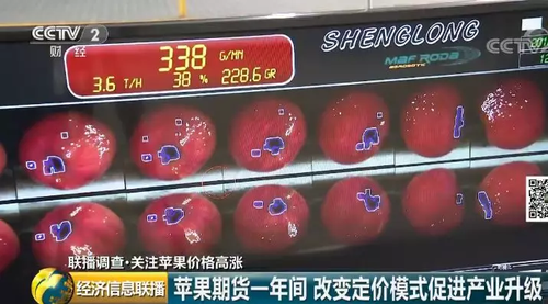 此外,在苹果期货上市前,贸易商等对苹果分级多依靠主观判断,容易造成同一批苹果品质各异,影响苹果的整体价值。在苹果期货上市后,市场各主体逐渐重视苹果的标准化分级。通过自动化筛选设备,苹果的大小、表面的伤痕、糖度等,甚至是不是有霉心病都可以检测出来。