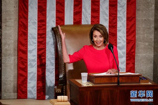 佩洛西当选众议院议长 1月3日,在美国华盛顿,南希·佩洛西当选国会众议院议长后发表讲话。