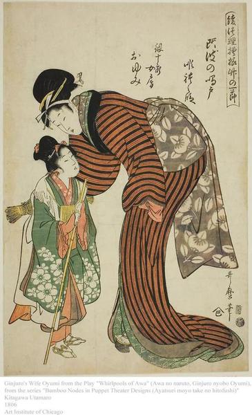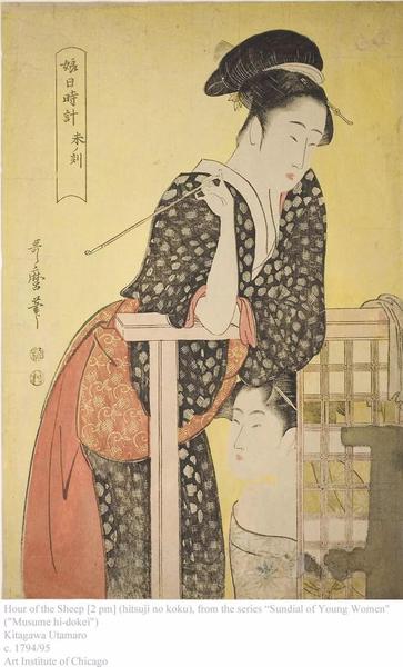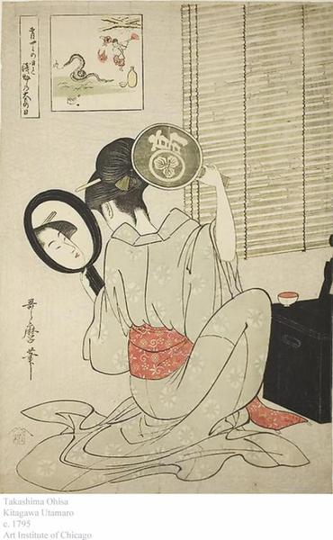 喜多川歌麿是浮世绘中“美人绘 (Bijin-ga)”的第一人,同时也是日本“大首绘(浮世绘半身胸像画)”的创始人。喜多川歌麿非常擅长通过细微的表情和动势探索人物的内心,他笔下的艺妓神态生动,姿态优柔。