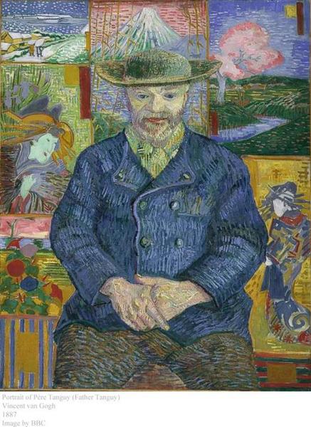 凡高作为浮世绘的忠实爱好者也将浮世绘元素带到了他的作品《唐吉老爹 (Portrait of Père Tanguy) 》中,更有评论家认为凡高的著作《星空》中流动的夜空有可能是受到《神奈川冲浪里》的启发。
