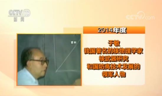 2014年度——授予我国著名的核物理学家、核武器研究和国防高技术发展的领军人物于敏。