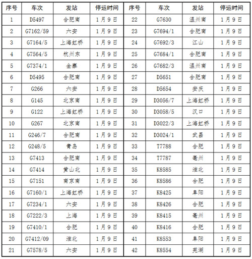 受暴雪影响长三角铁路计划停运部分列车车次表