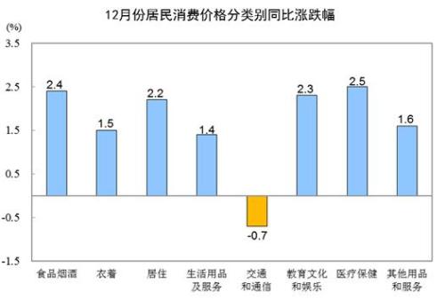 统计局:12月份居民消费价格同比上涨1.9%