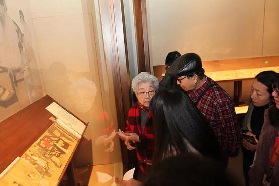 展览现场,已经退休的辽博摹画专家金桂琴老师及全程参与辽博古画摹制工作的赵洪山老师为观众介绍展品