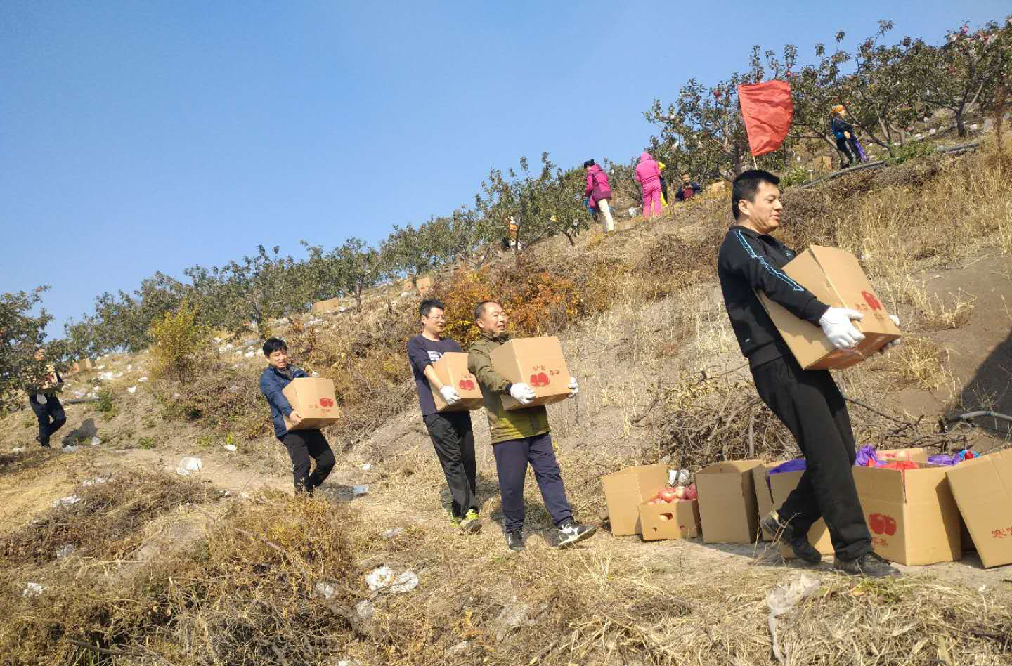 铁岭市政协委员、机关干部们帮助崔洪恩收苹果