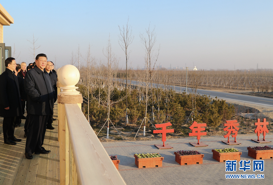 他叮嘱雄安的绿化者,蓝天、碧水、绿树,蓝绿交织,将来生活的最高标准就是生态好。绿水青山就是金山银山,雄安新区就要靠这样的生态环境来体现价值、增加吸引力。