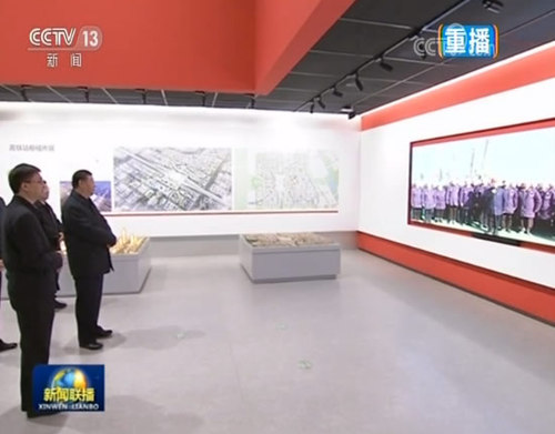 随后,习近平通过大屏幕连线京雄城际铁路雄安站建设工地现场。