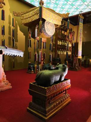 据《满洲祭神祭天典礼》记载,“我满洲国,自昔敬天,与神与佛,出于至诚。故创基盛京,即恭建堂子以祀天,又于寝宫正殿恭建神位以祀佛、菩萨及诸祀位?!碧硎敲髑迨逼诨实鄱韵茸娼屑漓氲牡胤剑魑泄昶诩涞闹匾孪?,每年都会举行祭祀。这其中,袷祭是一年中最大规模的祭祀仪式,在每年除夕的前一天,历代帝后神主都将被恭请到大殿合祭。