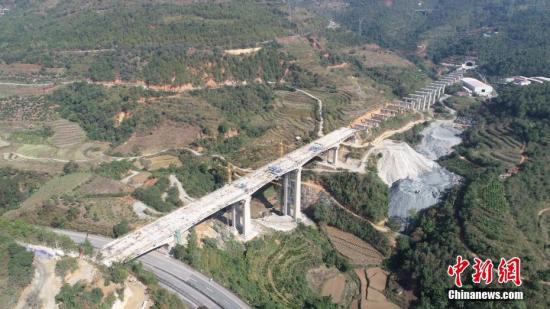 图为航拍立新寨四线特大桥。中新社发 陈畅 摄