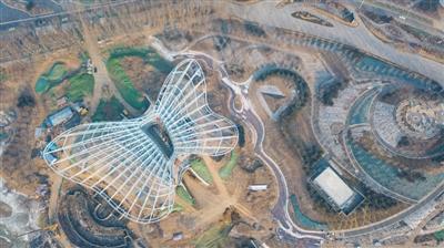 2019年1月12日,俯瞰北京世园会演艺中心,像一只蝴蝶。资料图片/新京报记者 彭子洋 摄