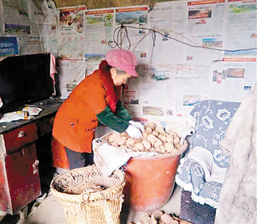 今年1月,刘令收到叔叔发来的一张照片,照片上是奶奶在客厅里安了一口缸子,缸里装满了红薯。叔叔告诉她说:“你奶奶让我给你说,红薯保存得好好的哟,过年肯定吃得到?!?/p>