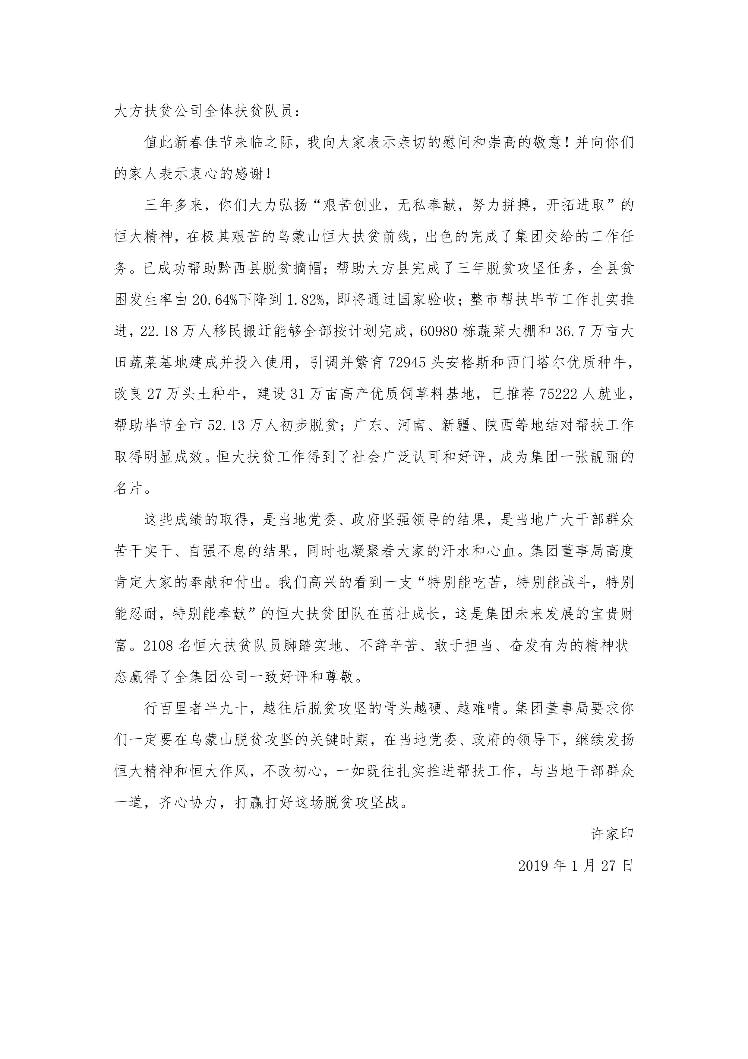 附许家印致全体恒大扶贫队员的一封公开信全文: