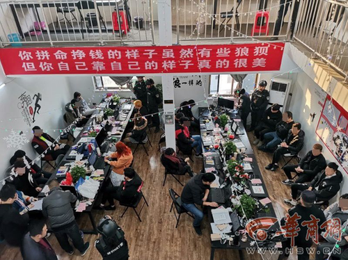 电信诈骗团伙挂"励志"标语:靠自己挣钱的样子很美