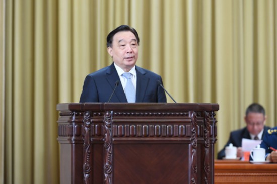 1月2日,《告台湾同胞书》发表40周年纪念会在北京人民大会堂隆重举行。图为中共中央政治局委员、全国人大常委会副委员长王晨发言。