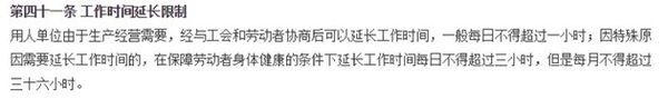 根据我国《劳动法》第三十六条规定:国家实行劳动者每日工作时间不超过八小时、平均每周工作时间不超过四十四小时的工时制度。尽管还有“工作时间延长限制”的特殊情况,但基本保障了劳动者足够的休息时间。