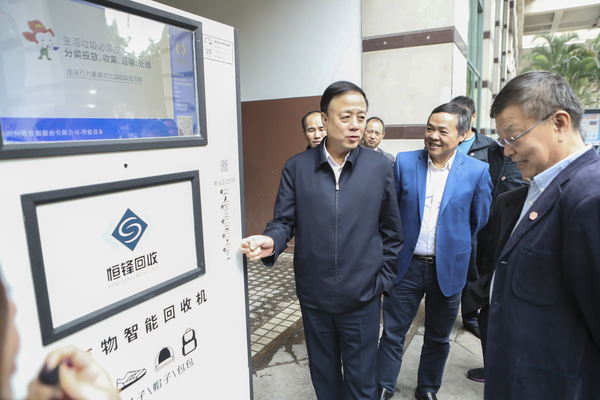 调研组在福田区梅林一村调研垃圾分类回收情况