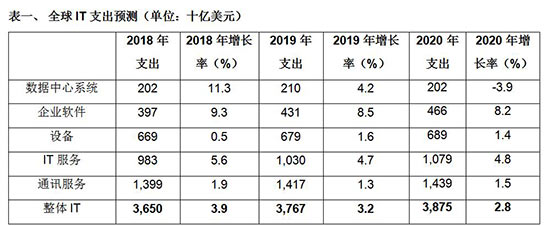 2019年全球IT支出预计将达3.8万亿美元 手机市场增长1.6%