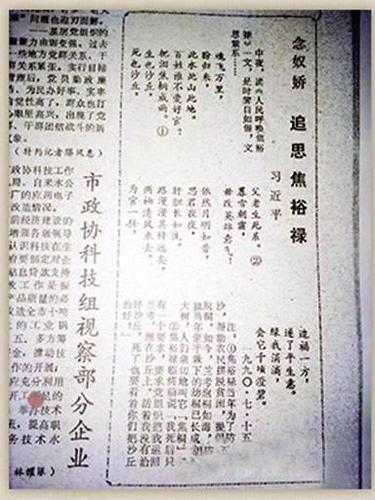 1990年7月16日,习近平在《福州晚报》上发表的《念奴娇·追思焦裕禄》。