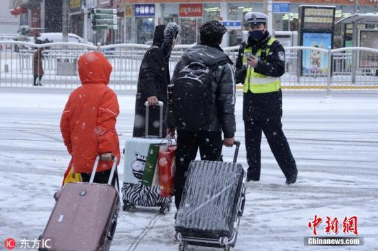资料图:节后迎返程高峰,民众冒雪出行。图片来源:东方IC 版权作品 请勿转载