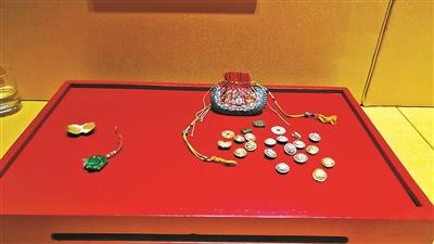 辞旧迎新之时,皇帝会向家人、亲族、大臣等赠送礼物,称之为“馈岁”,以此巩固亲情,团结“群众关系”。韩倩介绍,万岁爷送出的新年“伴手礼”可不是简单粗暴地“砸钱”,还是很讲究文化底蕴的。首选礼物就是绣纹精美的荷包,什么缎绣万福万寿纹荷包、缎绣福寿如意纹元宝式荷包。这些荷包上的刺绣图案也很讲究寓意,比如红包上刺绣插有谷穗的瓶子,一旁刺绣了鹌鹑,那就代表“岁岁平安”。同时,荷包里当然还装着“压岁钱”,比如金银元宝、金银钱、各色玉石八宝等吉祥小物件。