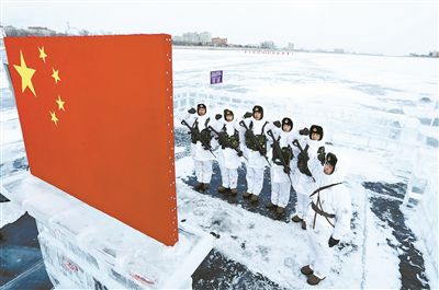 2月10日,北部战区陆军某边防旅“黑河好八连”官兵执行巡逻任务前,在界江哨位国旗墙前宣誓。郑耀耀摄
