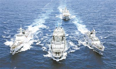 2月7日,南部战区海军远海联合训练编队在太平洋某海域进行海上补给。本报特约记者 周启青摄