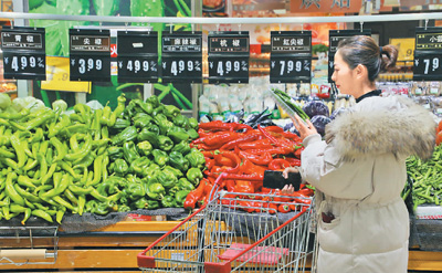 近年来,消费升级步伐加快,百姓在消费时对商品的品质要求不断提高,消费方式由实物消费更多地转向服务消费。 1月10日,市民在山东省烟台市新世界百货的超市买菜。 唐 克摄(人民视觉) |