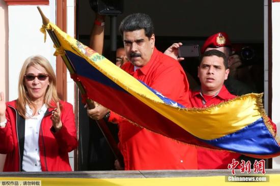 资料图:当地时间1月23日下午,委内瑞拉总统马杜罗宣布与美国断交,并要求美使馆人员72小时内离开委内瑞拉。图为当地时间1月23日,委内瑞拉总统马杜罗在首都加拉加斯参加集会并发表讲话。