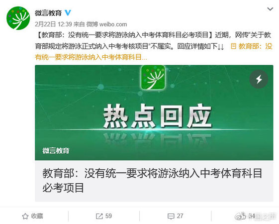 在招生制度改革方面,近期,网传“教育部规定将游泳正式纳入中考考核项目”,不过教育部最新回应称不属实,但中考命题改革已是箭在弦上。教育部表示,今年将制订推进中考命题改革的意见,深化中小学校招生入学改革。