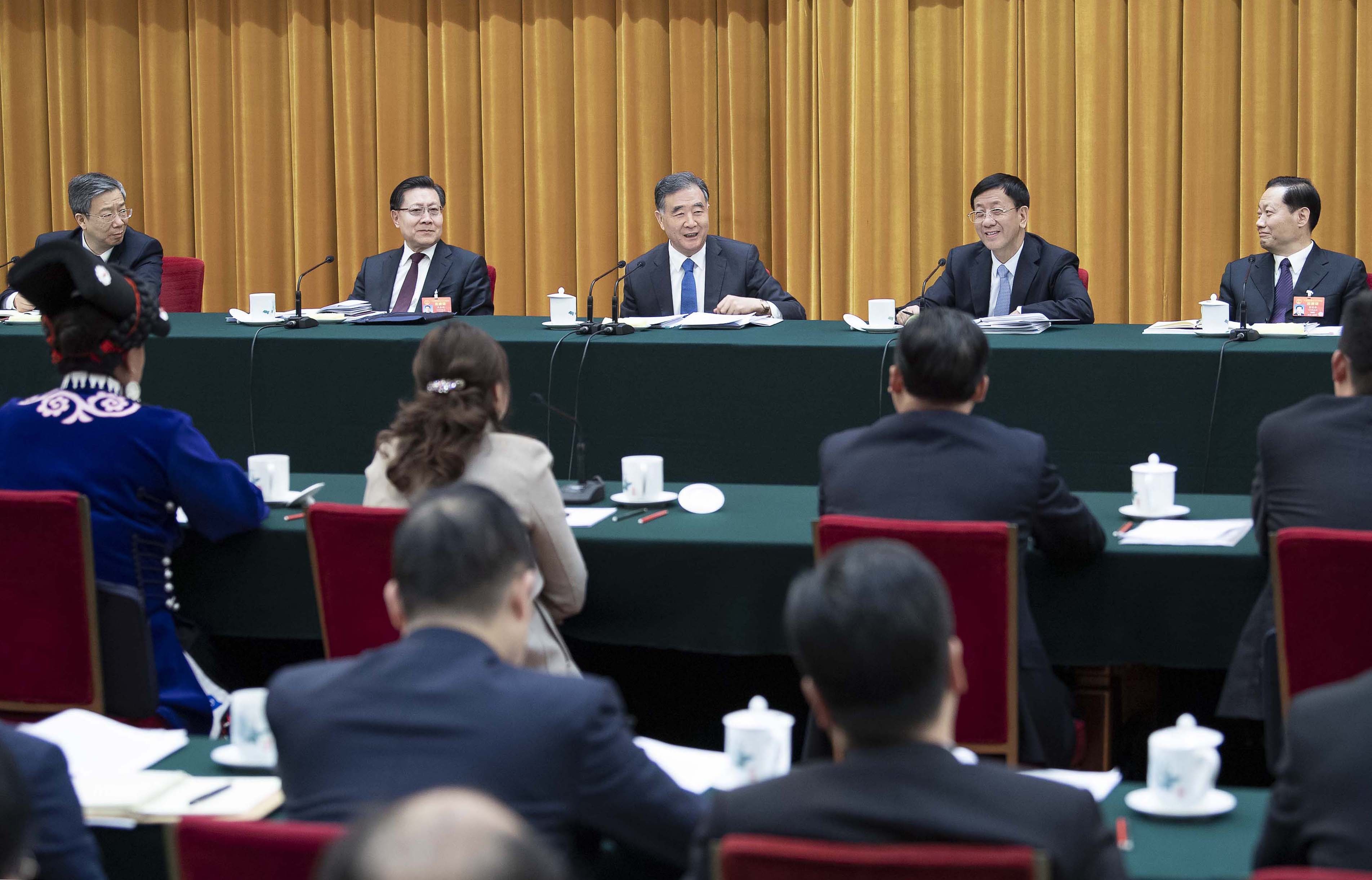 3月5日,中共中央政治局常委、全国政协主席汪洋参加十三届全国人大二次会议四川代表团的审议。新华社记者 李涛 摄