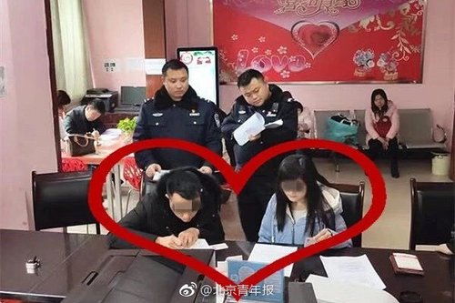 原标题:逃犯自首请求先办结婚手续 民警全副武装“证婚”