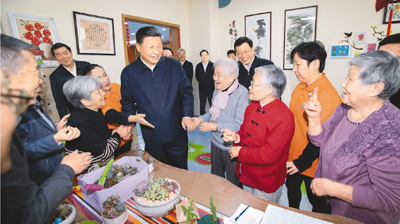 二〇一八年十一月六日至七日,中共中央总书记、国家主席、中央军委主席习近平在上海考察。图为六日上午,习近平在虹口区市民驿站嘉兴路街道第一分站托老所同老年居民亲切交谈。
