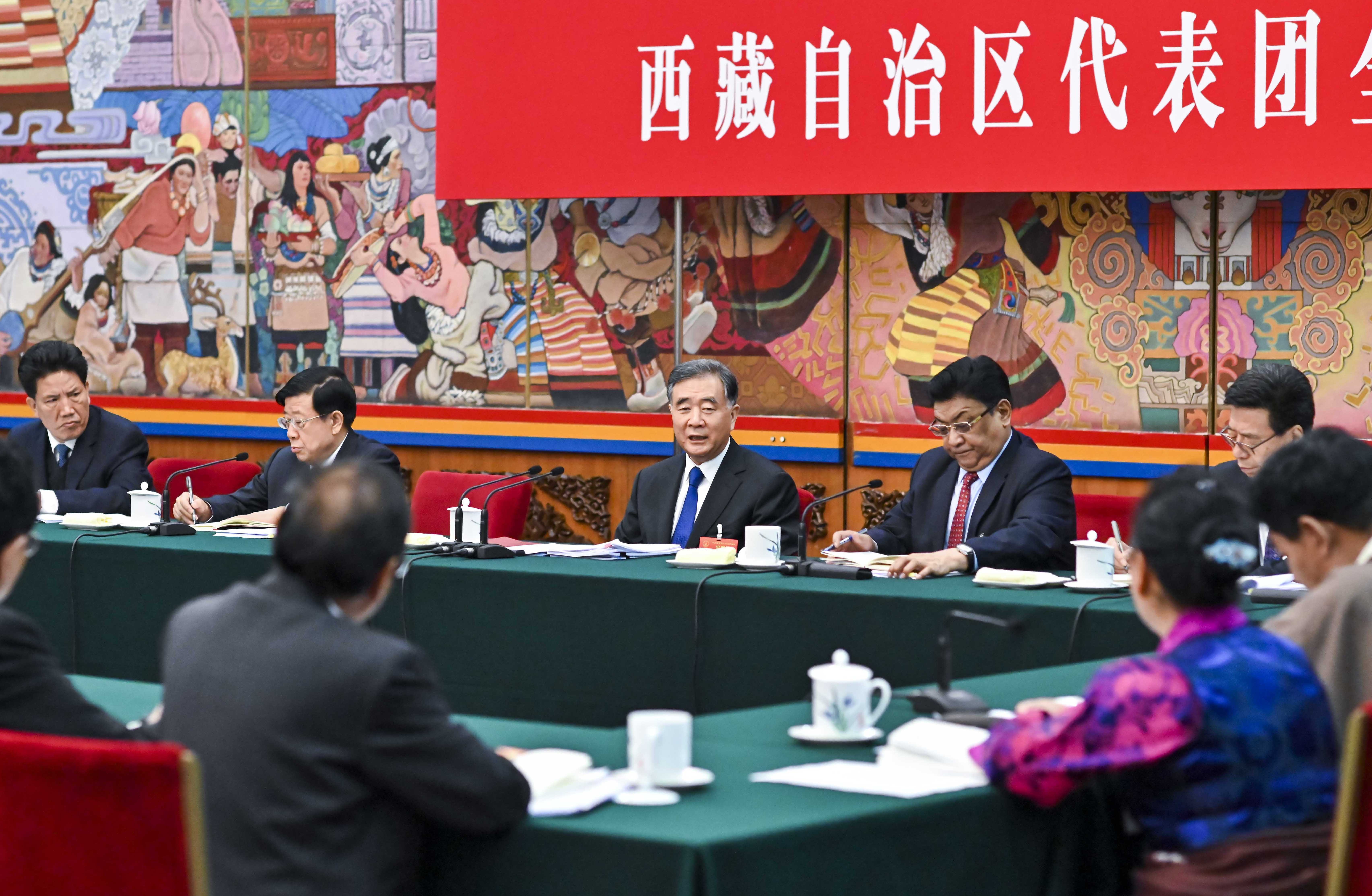 3月10日,中共中央政治局常委、全国政协主席汪洋参加十三届全国人大二次会议西藏代表团的审议。新华社记者 李学仁 摄