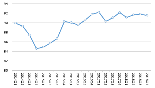 八是全国消费维权指数保持高位。2018年,全国消费维权指数平均为91.53,较去年同期增长了0.11个点,与五年平均值相比,增长了1.9个点。全国消费维权指数小幅增长,保持在高位,表明在我国经济总体平稳、稳中有进的发展态势下,消费环境持续向好。
