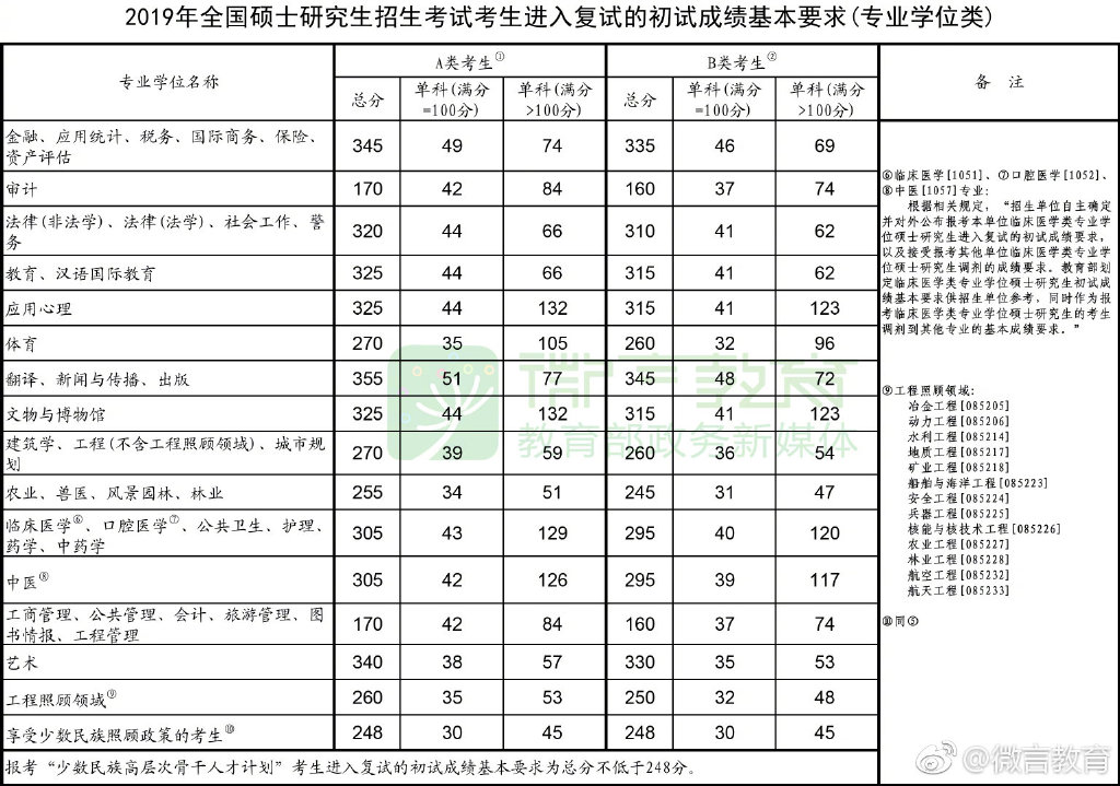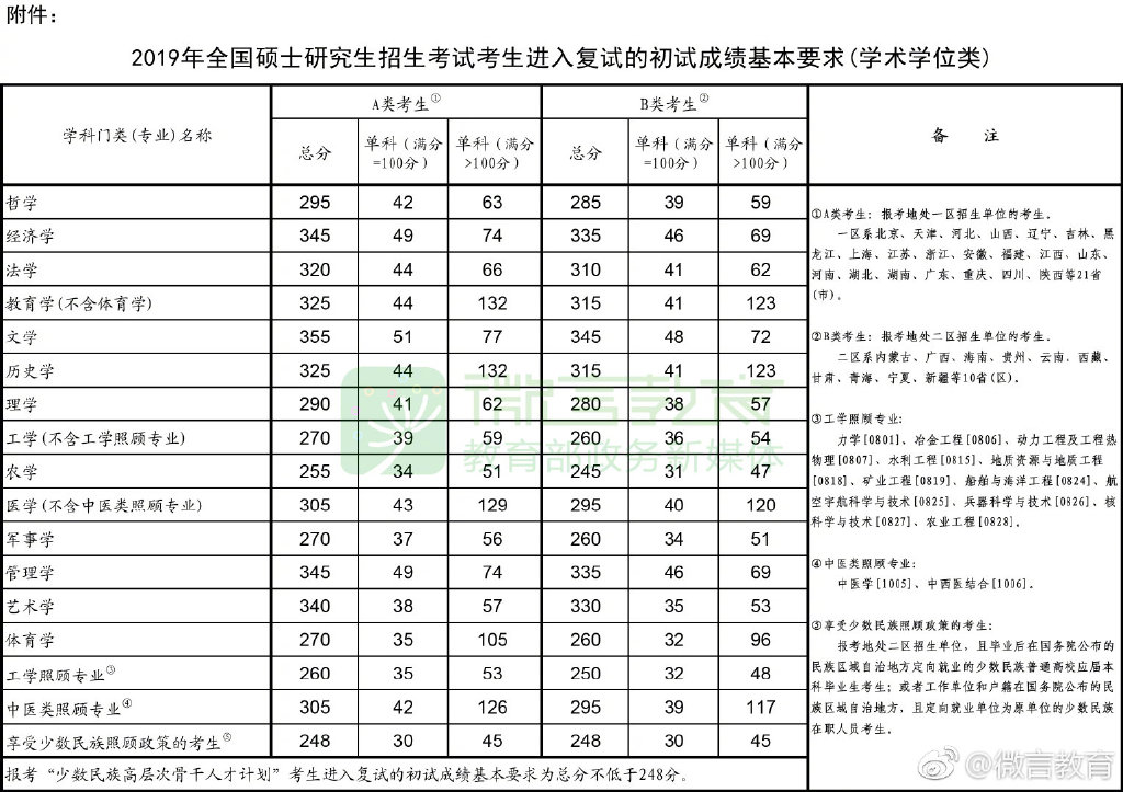 中新网3月15日电 据教育部网站消息,今日,教育部公布《2019年全国硕士研究生招生考试考生进入复试的初试成绩基本要求》(国家分数线),2019年全国硕士研究生复试录取工作全面展开。