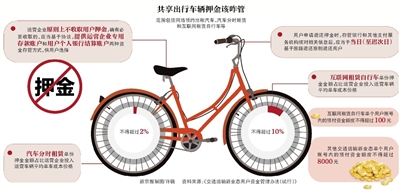 新规提出,汽车分时租赁的单份押金金额不得超过运营企业投入运营车辆平均单车成本价格的2%;互联网租赁自行车的单份押金金额不得超过运营企业投入运营车辆平均单车成本价格的10%。
