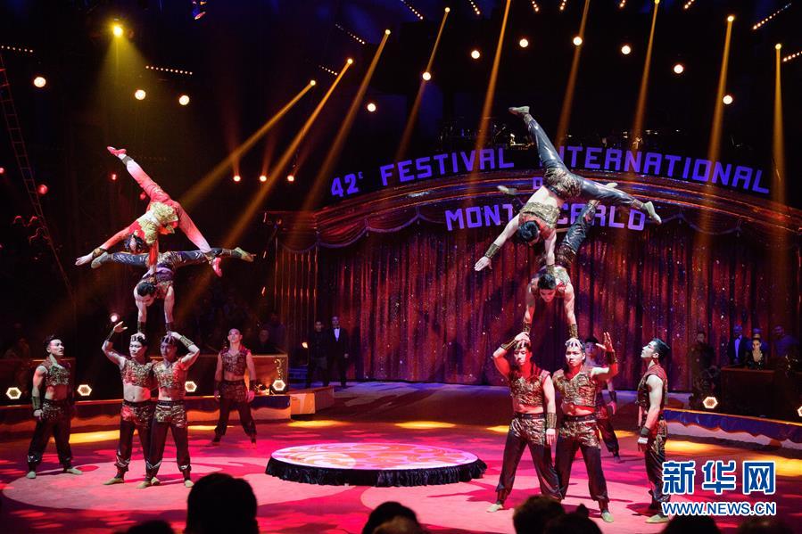 这是2018年1月20日,中国上海杂技团在摩纳哥蒙特卡洛马戏节上表演。 新华社记者 陈益宸 摄