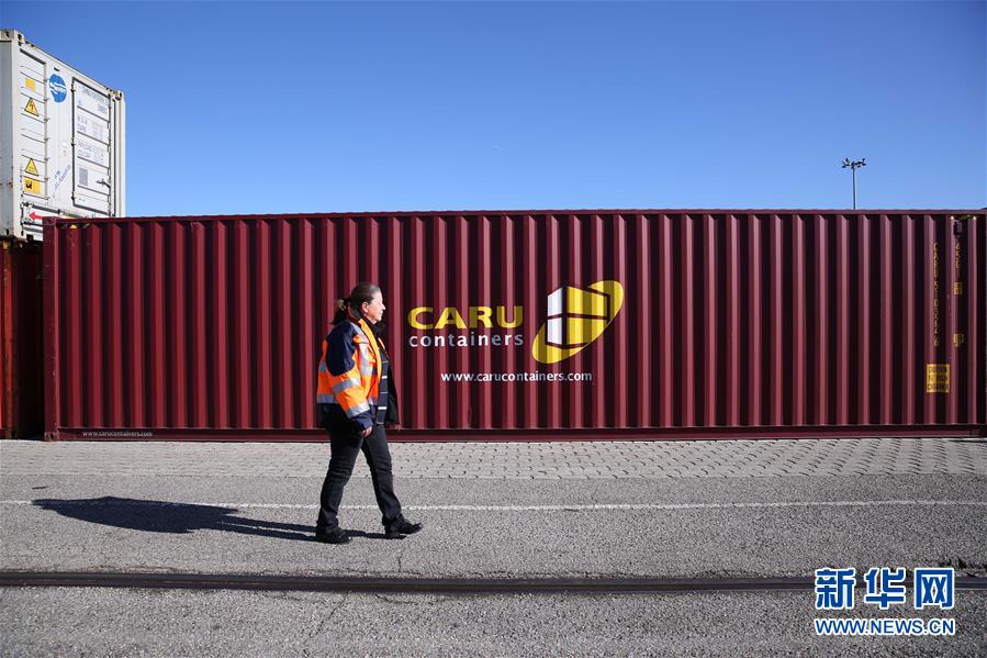这是2019年3月5日,装载有中国商品的集装箱从中国武汉发出后,经由中欧班列运输抵达法国里昂。 新华社记者 唐霁 摄